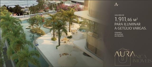 No ultimo terreno da Getúlio Vagas, o Aura oferece o melhor. 1.911,46m² dedicados ao seu bem-estar. Rooftop no 35º andar com SKY Gym e SKY Pub. Complexo aquático aquecido com vista definitiva para o mar. Salão de festas, coworking, playground e muito mais.
